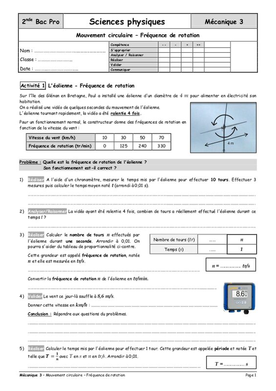 Mécanique 3 - Mouvement circulaire - Fréquence de rotation