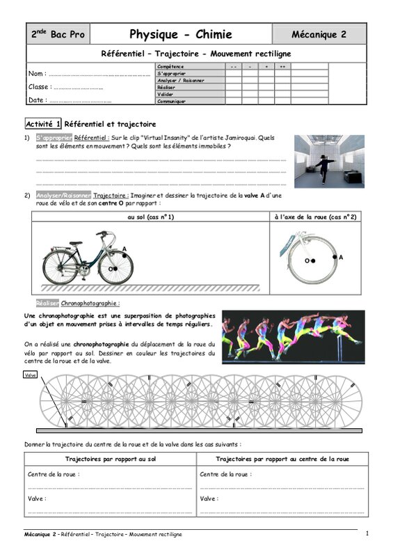 Mécanique 2 : référentiel - Trajectoire - Mouvement rectiligne