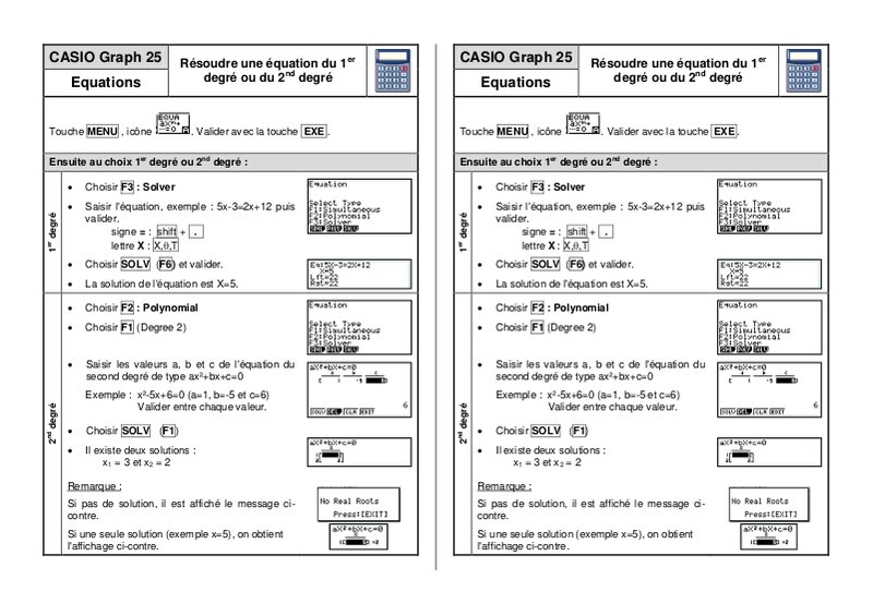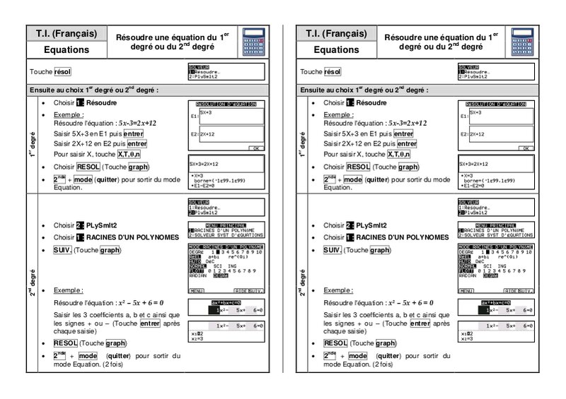 T.I. - Fiche Calculatrice : Résoudre une équation