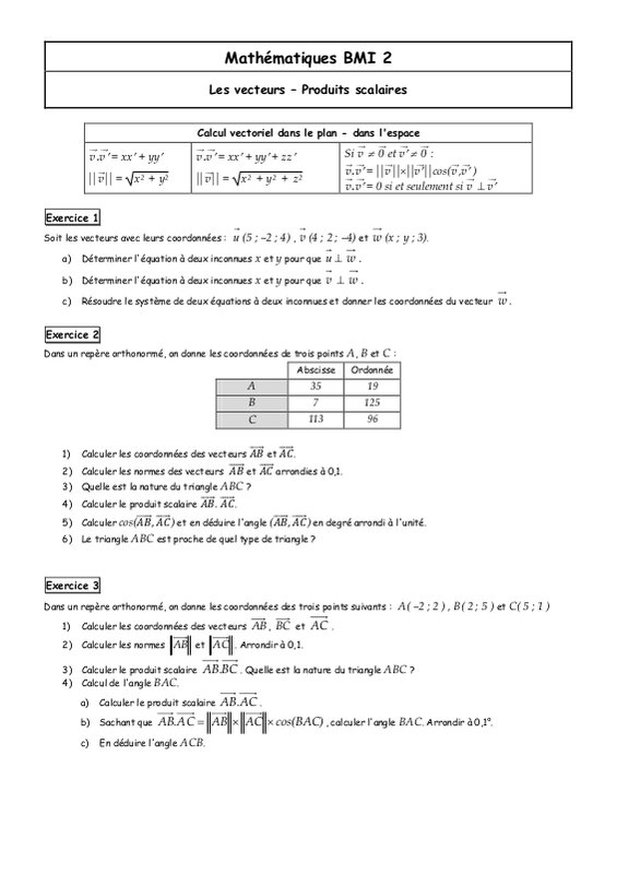 Exercices produits scalaires