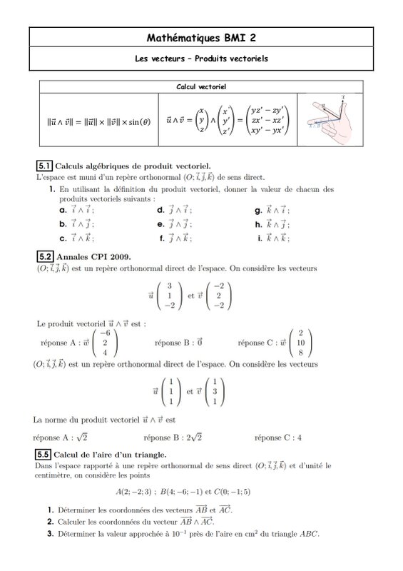 Exercices produits vectoriels
