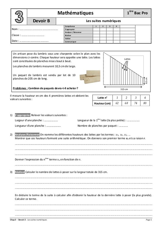 Mathématiques 1ère Bac Pro