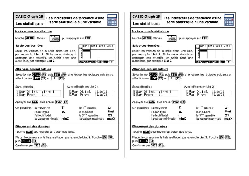 Fiche Calculatrice Casio 25 - Statistiques : Les indicateurs
