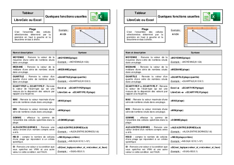 Fiche Tableur - Quelques commandes usuelles