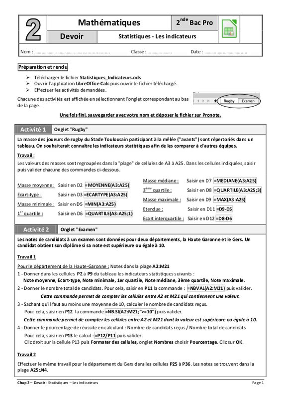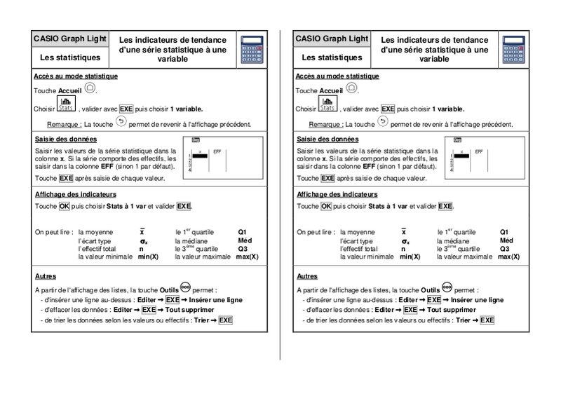 Fiche Calculatrice Casio Light - Statistiques : Les indicateurs