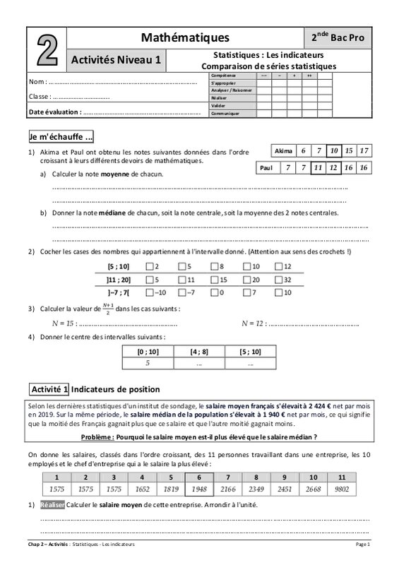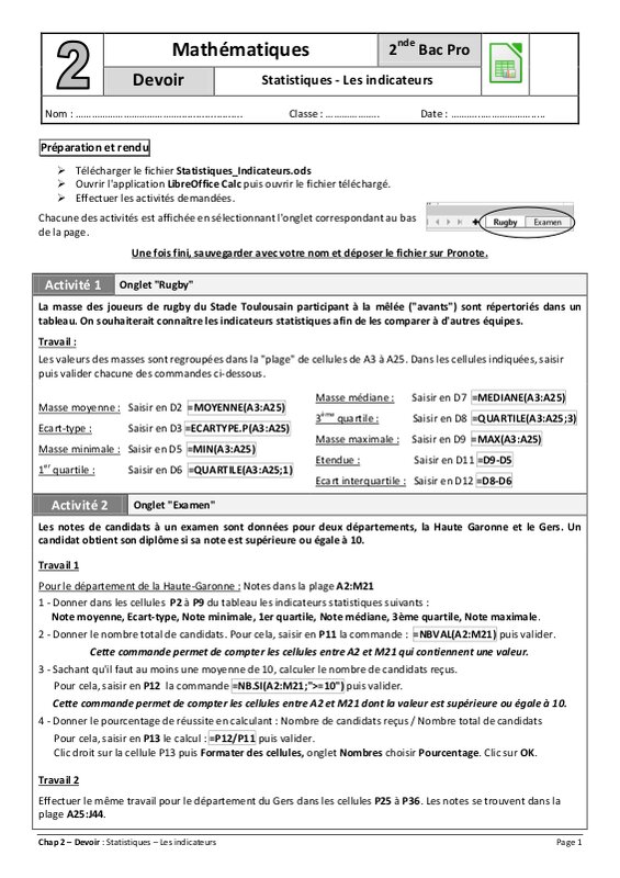 Chap 2 - Statistiques : Les indicateurs