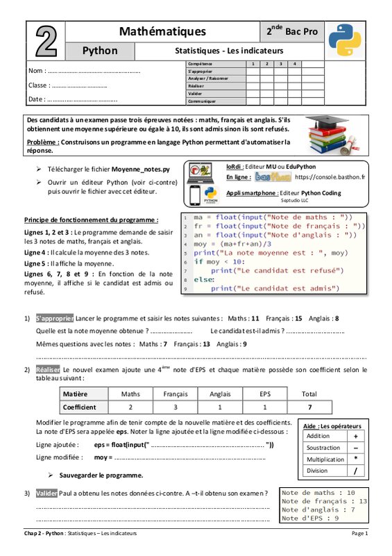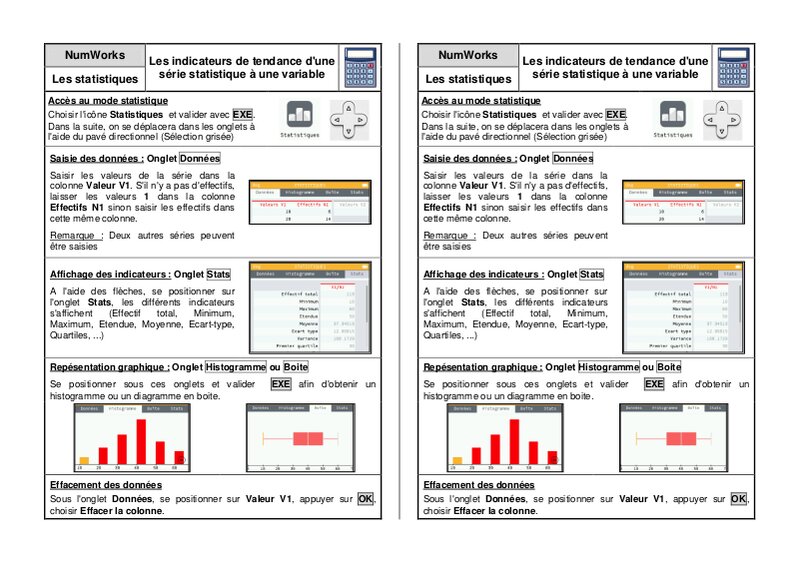 Fiche Calculatrice Numworks - Statistiques : Les indicateurs