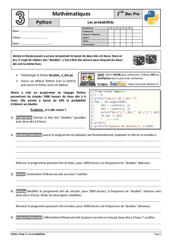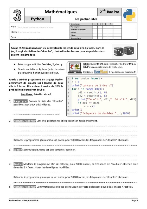 Chap 3 - Les probabilités - Fluctuation des fréquences