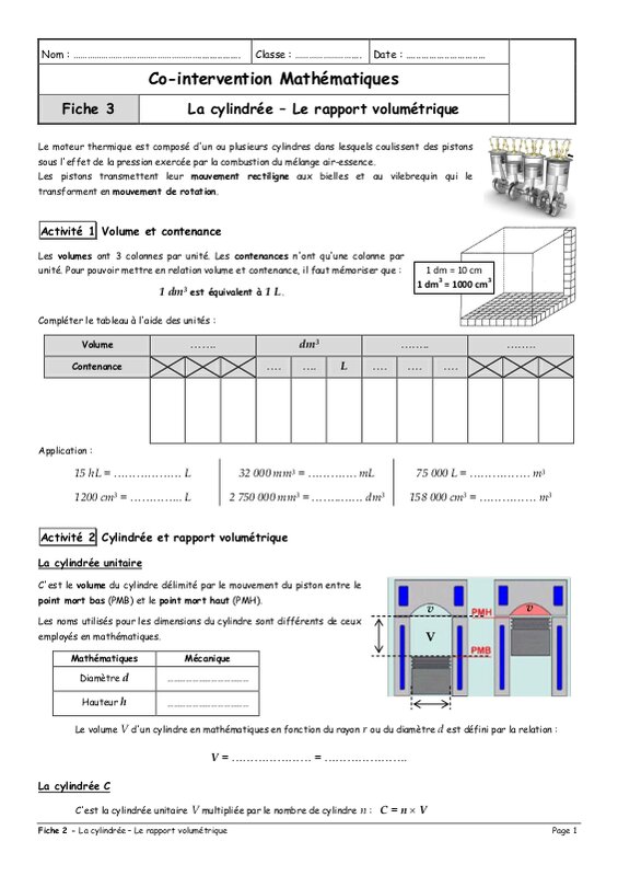 Fiche 3 - La cylindrée - Le rapport volumétrique