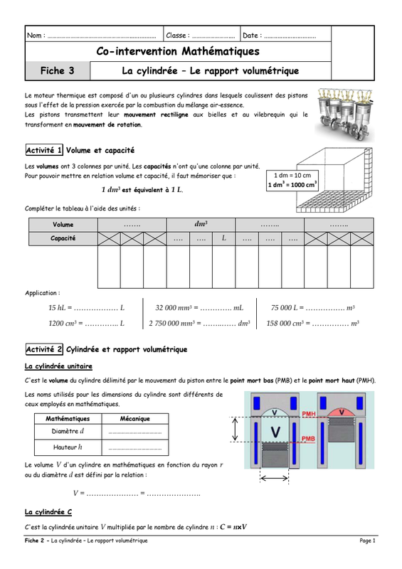Fiche 3 - La cylindrée - Le rapport volumétrique