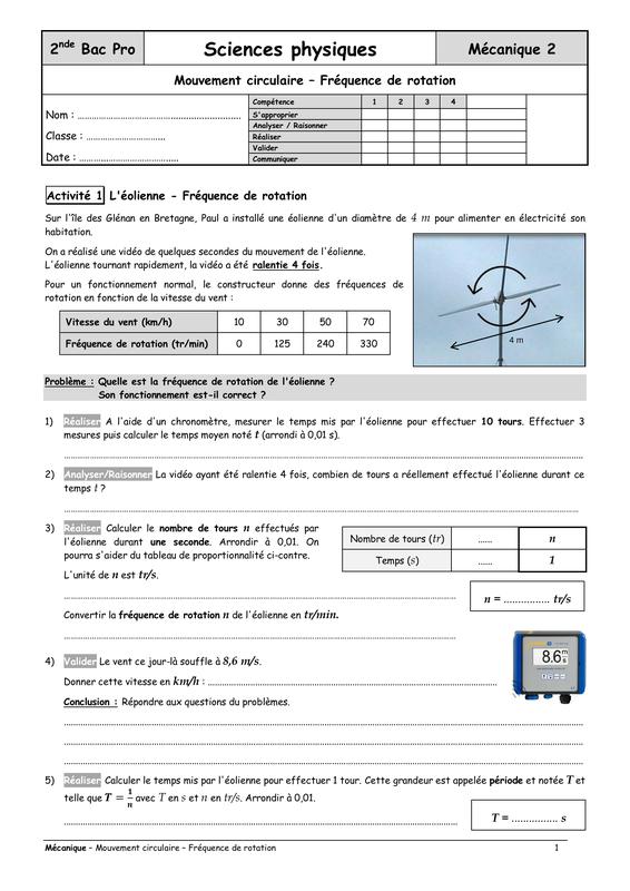 Mécanique 2 - Mouvements circulaires - Fréquence de rotation