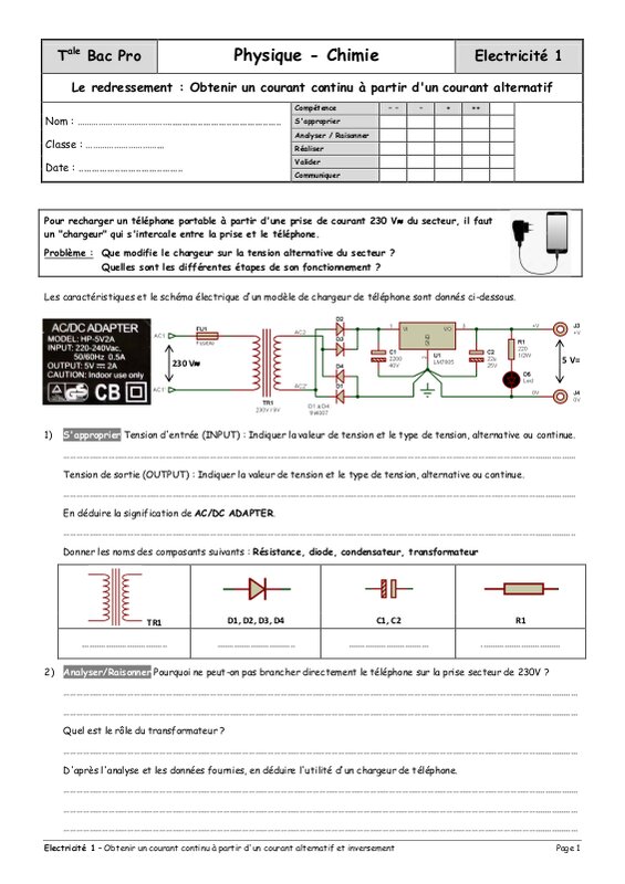 Electricite 1 - Le redressement : Obtenir un courant continu à partir d'un courant alternatif